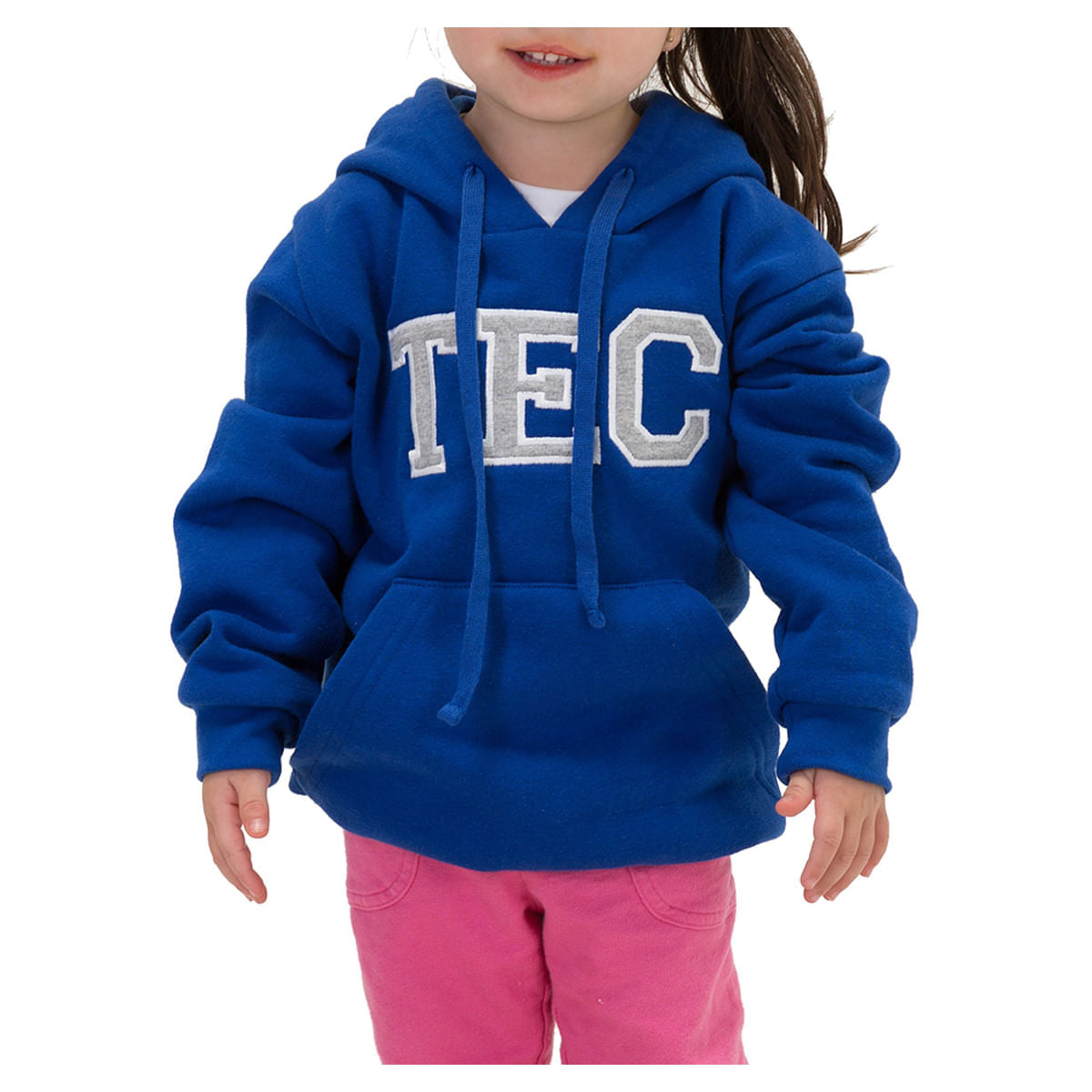 Sudadera azul infantil oficial TEC, con capucha, bolsa frontal y tela suave que conserva el calor. Ideal para mantener cómodos y abrigados a los pequeños.