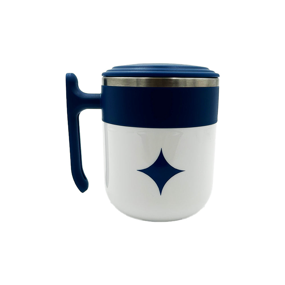 Lleva contigo la Taza Colombia HPIS, una taza de acero inoxidable doble pared con una capacidad de 360 ml y con tapa de cierre a presión y asa de plástico,.